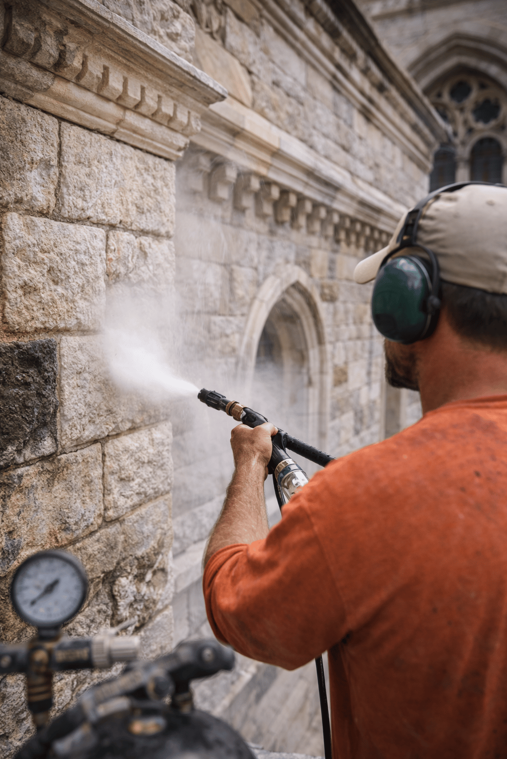 Low-pressure, preservation-focused cleaning by masonry restoration experts